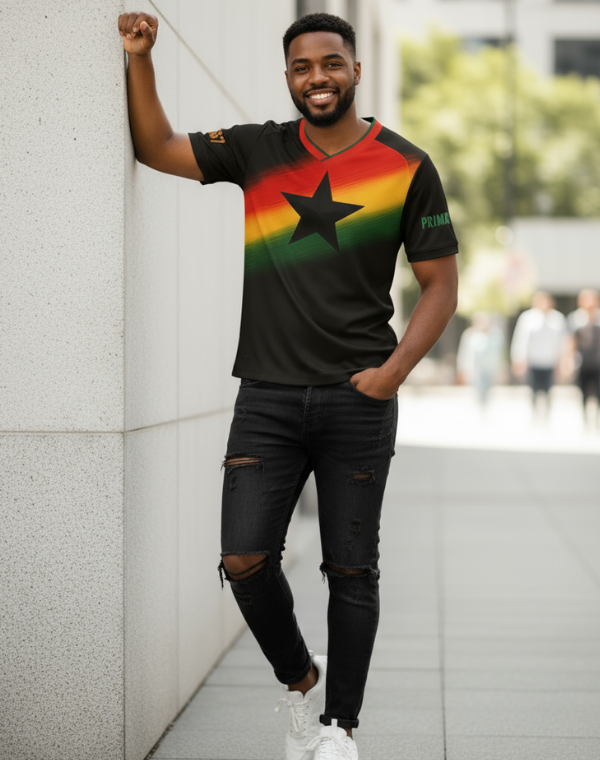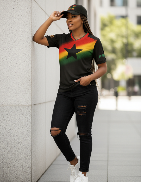 Wear your pride. The Primac Ghana 1957 Jersey blends heritage and streetwear with iconic colors and sleek performance fabric.